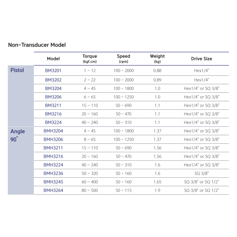 - Digital torque and angle program in 15 presets and 2 multi step sequence programs
